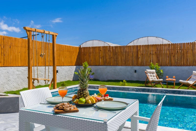 - Korunaklı havuz bahçe