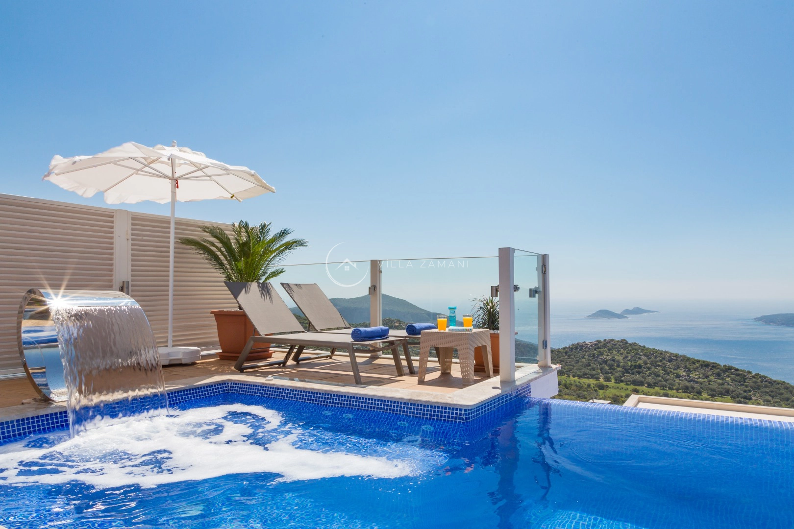Villa La Mer Azur, Kalkan Kördere mevkiinde konumlanan şirin bahçeli havuzu oldukça korunaklı villamızdır. Müstakil yüzme havuzu dışarıya karşı oldukça korunaklı olduğu için tatilde gözlerden uzak olmak isteyen misafirlerimiz rahat edeceklerdir. Toplam 4 yatak odasından oluşmuş, 8 kişi konaklama kapasitesine sahiptir. Geniş aileler ve kalabalık arkadaş grupları için oldukça idealdir. Oldukça şık ve modern bir şekilde döşenmiş olan villamızda misafirlerimiz için her şey düşünülmüştür. Havuz terasında bulunan şezlonglarda güneşlenebilir, bahçe masasında muhteşem yemekler yiyebilir, salıncakta sallanıp keyifli dakikalar geçirebilirsiniz.