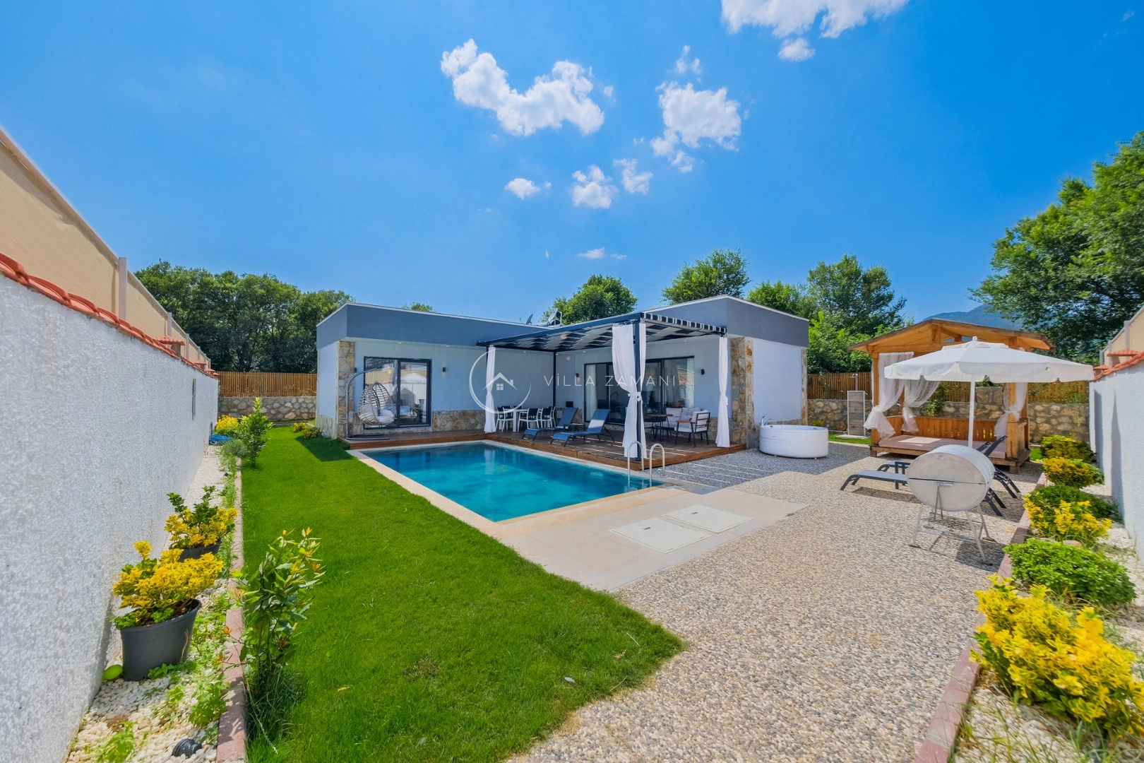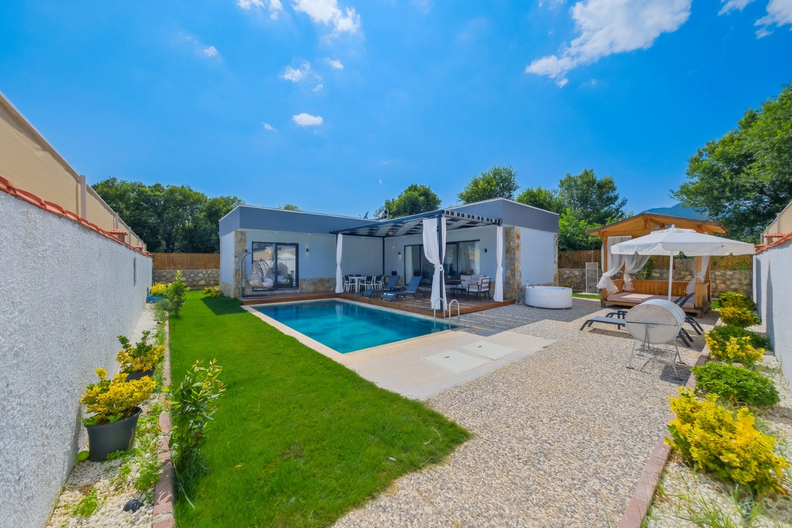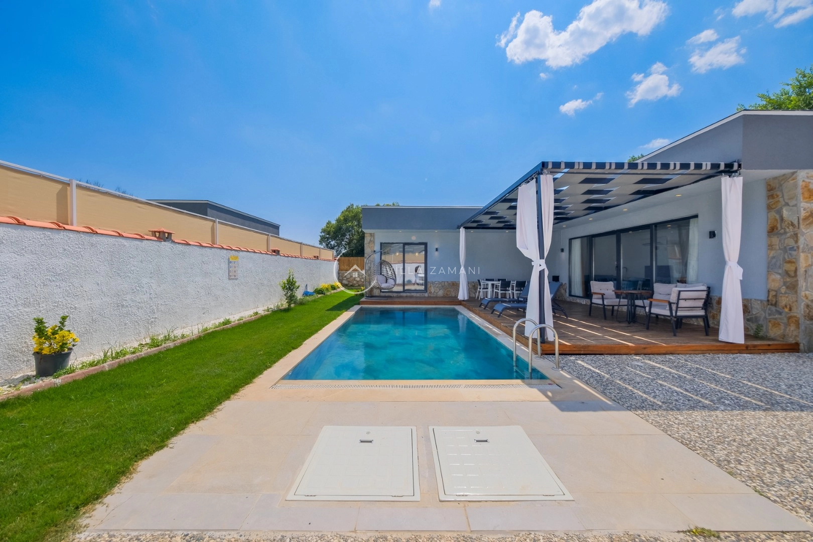 - Korunaklı havuz bahçe