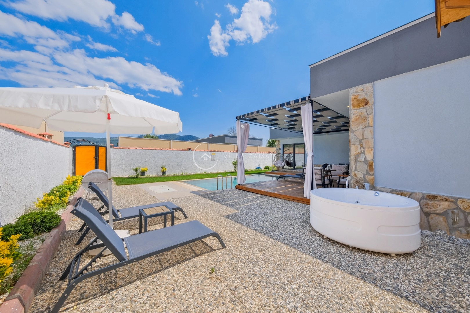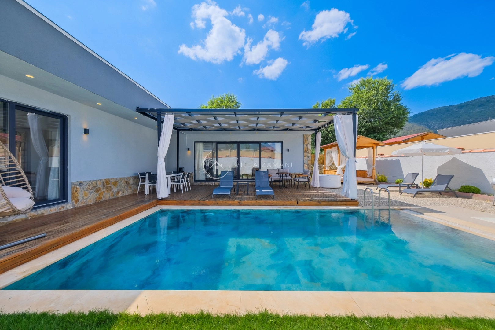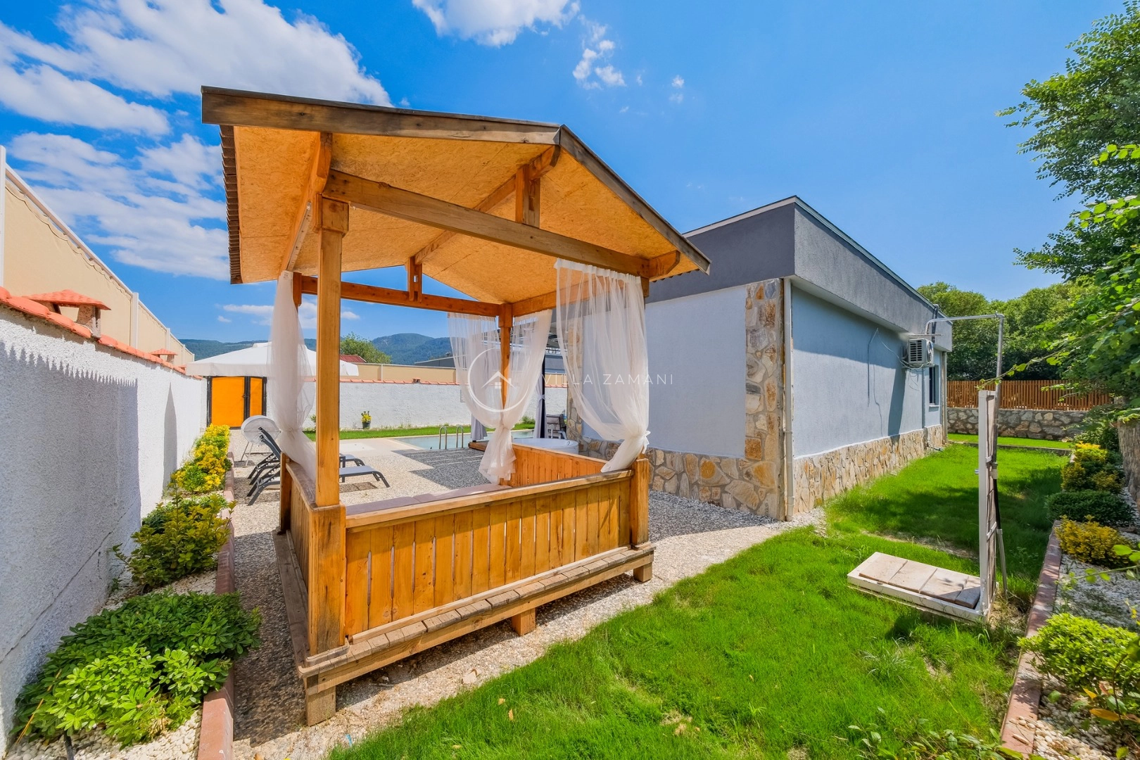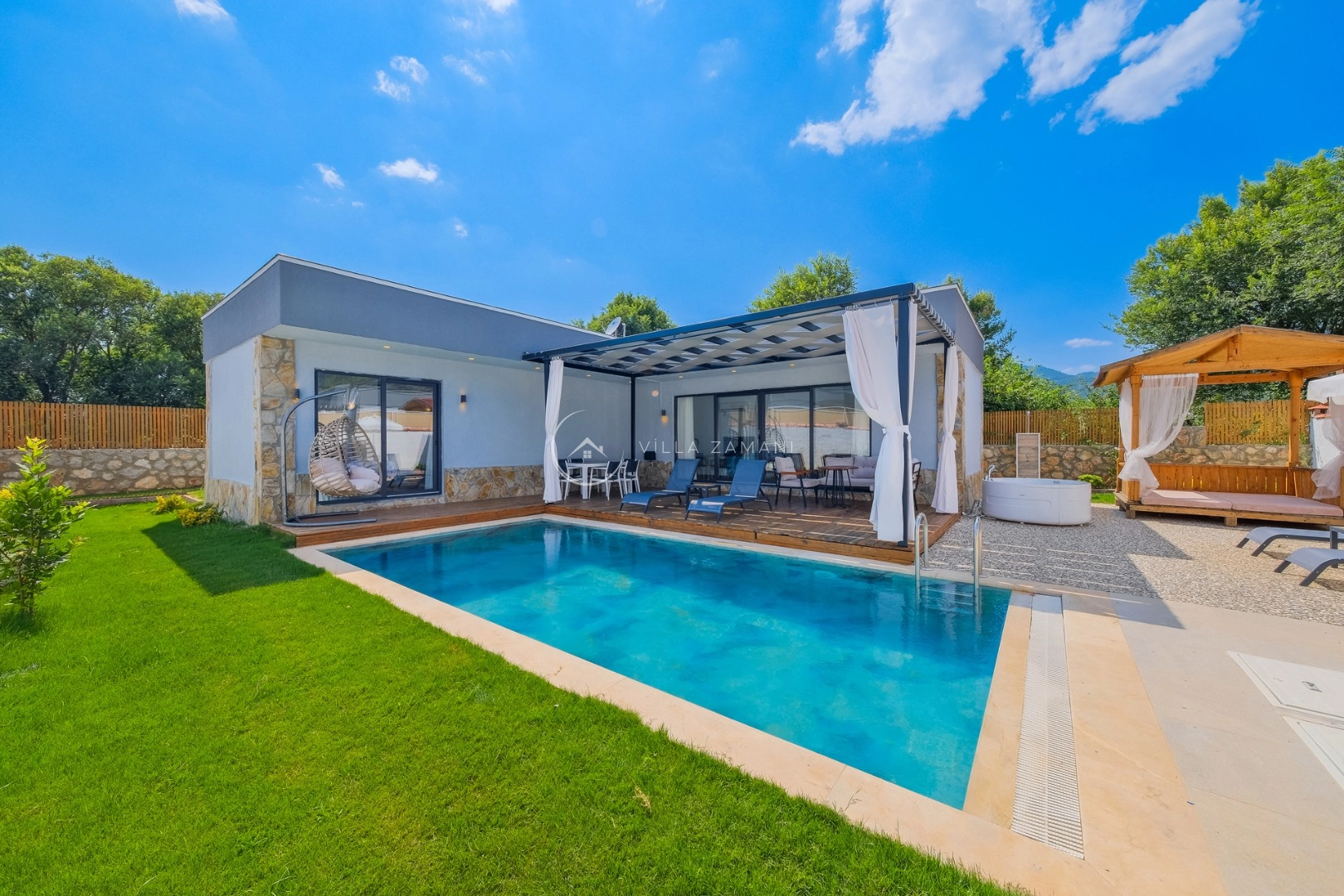 - Korunaklı havuz bahçe
