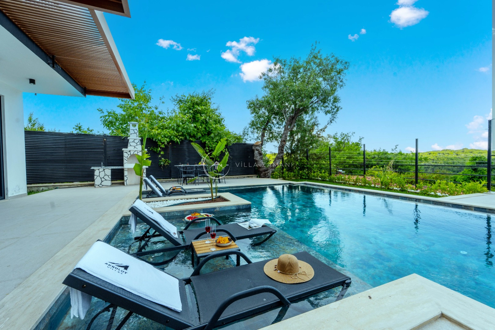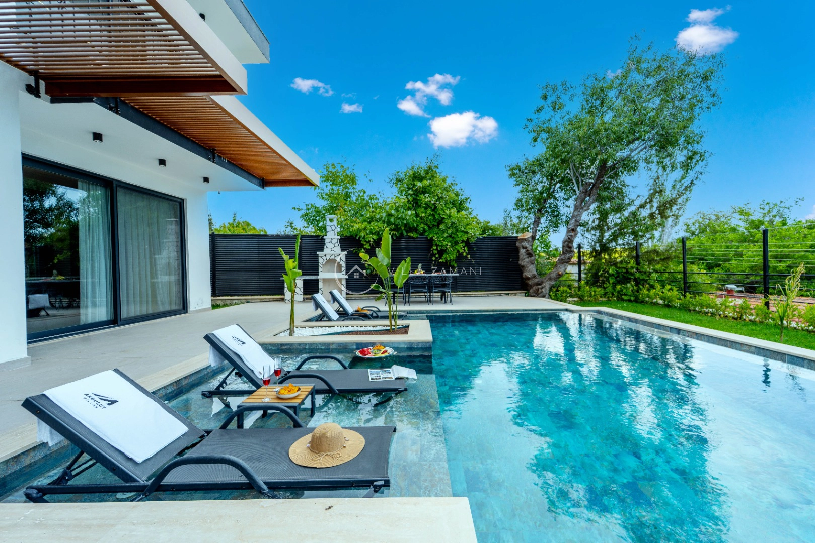 - Korunaklı havuz bahçe