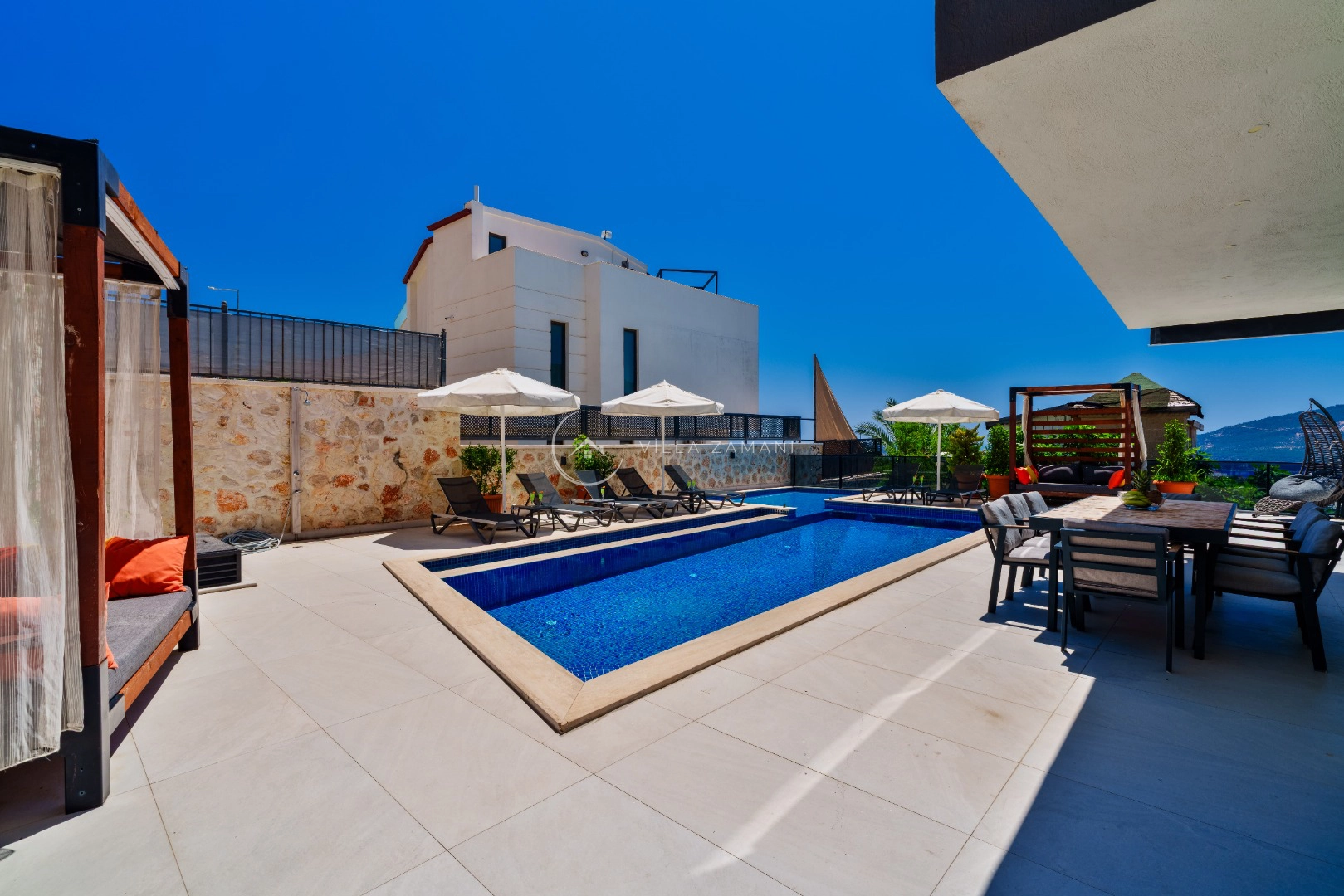 Villa Cassa, Türkiye’nin gözde tatil beldesi Kalkan’ın Kızıltaş bölgesinde bulunmaktadır. Muhteşem deniz ve doğa manzarası olan villa 4 oda 8 kişi kapasitelidir. Villa Cassa’da sıkılmadan vakit geçirebilmeniz için tüm detaylar düşünülmüş olup villada kapalı havuz, çocuk havuzu, spor alanı, bar, çift jakuzi, hamam, sauna, bilardo, langırt bulunmaktadır. Villamız merkezi konumda olup, Kalkan Merkeze 1.3 km uzaklıktadır.