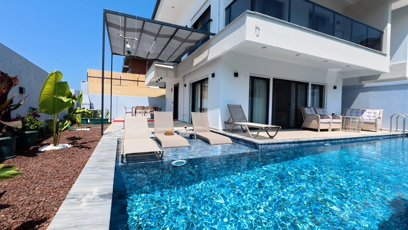Fethiye’nin doğayla iç içe ve sakin atmosferiyle öne çıkan Karagedik bölgesinde yer alan Villa Karakaya, huzurlu bir tatil arayan aileler ve arkadaş grupları için özel bir seçenek sunuyor. 3 yatak odası ve 6 kişilik kapasitesiyle geniş konaklama imkânı sağlayan villa, konforlu ve modern yapısıyla öne çıkıyor.Kendine ait özel yüzme havuzu ve bahçesiyle misafirlerine özgür bir tatil alanı sunan Villa Karakaya, hem doğanın keyfini çıkarmak hem de şehrin merkezine yakın olmak isteyenler için ideal bir denge sağlıyor. Villamızın havuzunda açılır kapanır pergule sistemi mevcuttur . Villamızın havuzunda ısıtmalı sistem bulunmaktadır .