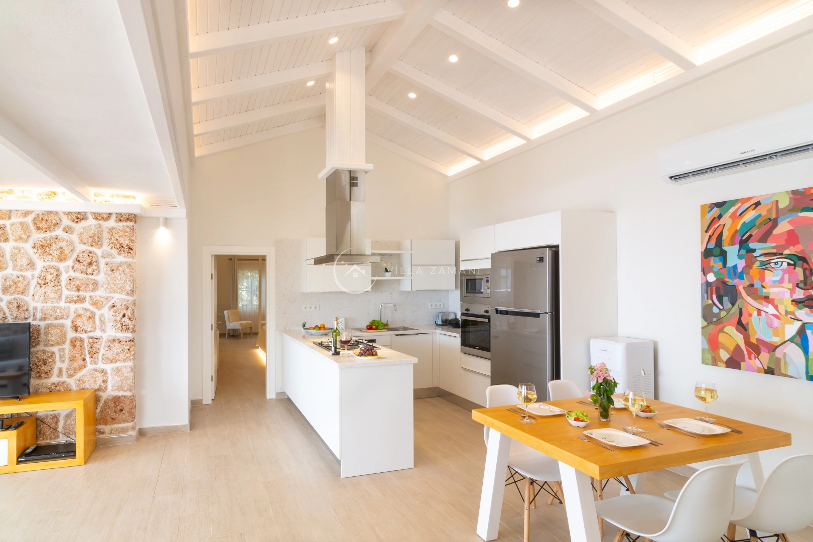 Toplam 2 yatak odasından oluşmuş, 4 kişi konaklama kapasitesine sahiptir. Çekirdek aileler ve arkadaş grupları için oldukça idealdir. Oldukça şık ve modern bir şekilde döşenmiş olan villamızda misafirlerimiz için her şey düşünülmüştür. Havuz terasında bulunan şezlonglarda güneşlenebilir, bahçe masasında muhteşem yemekler yiyebilir, salıncakta sallanıp keyifli dakikalar geçirebilirsiniz.